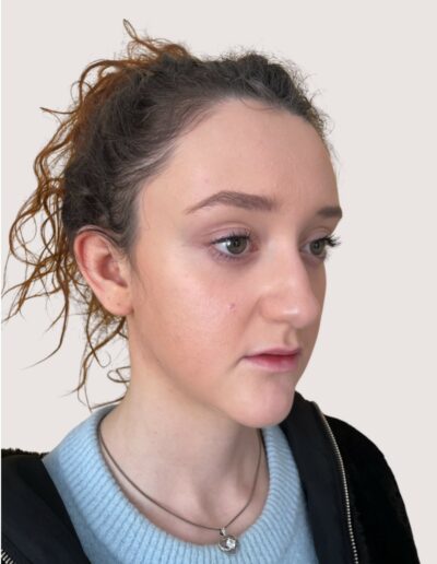 Il terzo inferiore del volto (distanza naso-mento) appariva ridotto in altezza, con la scomparsa del fisiologico gap interlabiale. Ciò conferiva scarsa armonia alla parte inferiore del viso e un aspetto meno giovanile. Inoltre, le pieghe labio-geniene risultavano marcate.