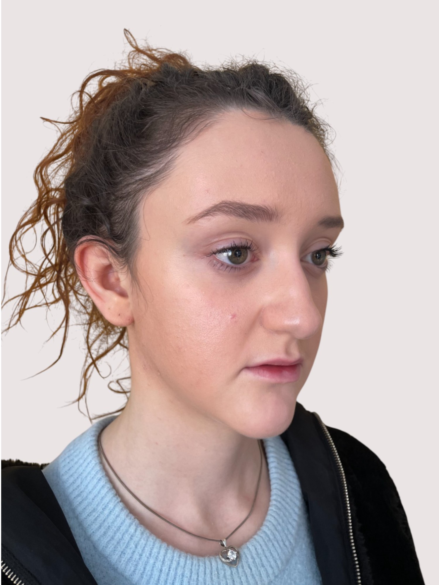 Il terzo inferiore del volto (distanza naso-mento) appariva ridotto in altezza, con la scomparsa del fisiologico gap interlabiale. Ciò conferiva scarsa armonia alla parte inferiore del viso e un aspetto meno giovanile. Inoltre, le pieghe labio-geniene risultavano marcate.