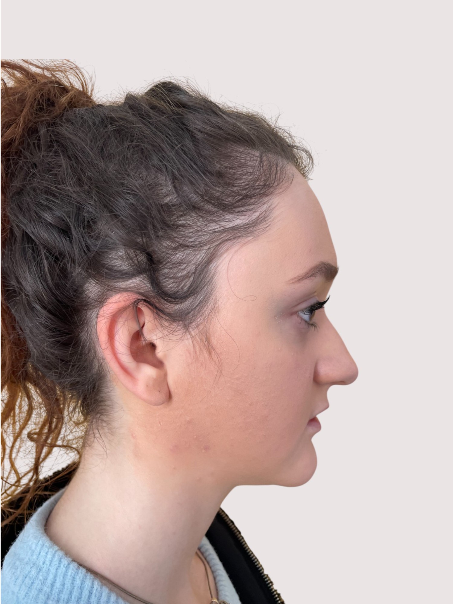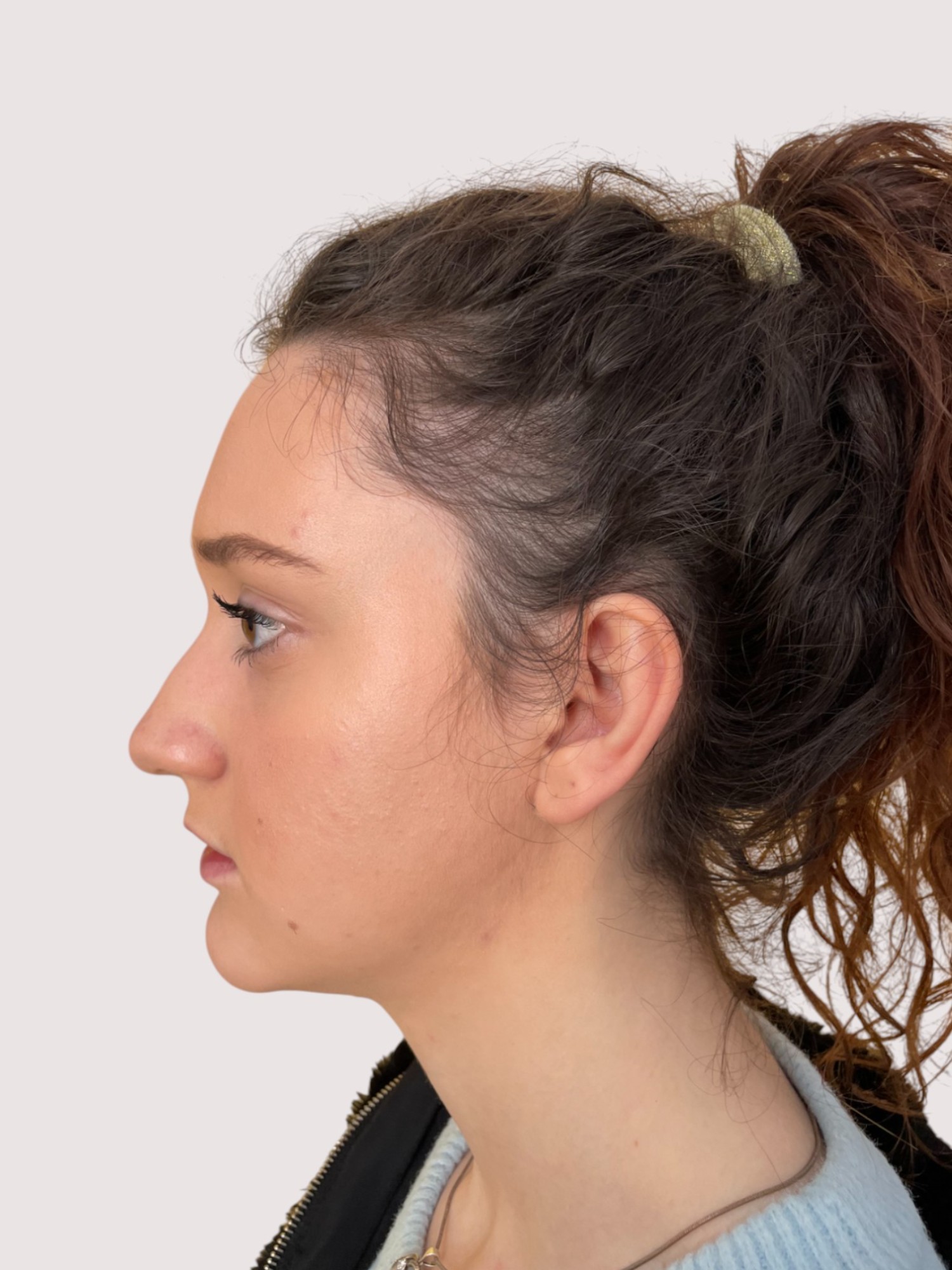 È stato eseguito un intervento di avanzamento maxillo-mandibolare, associato a una centratura della mandibola per ripristinare la simmetria facciale. L’accesso è stato effettuato interamente per via intraorale, evitando cicatrici visibili.