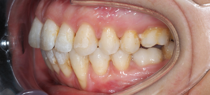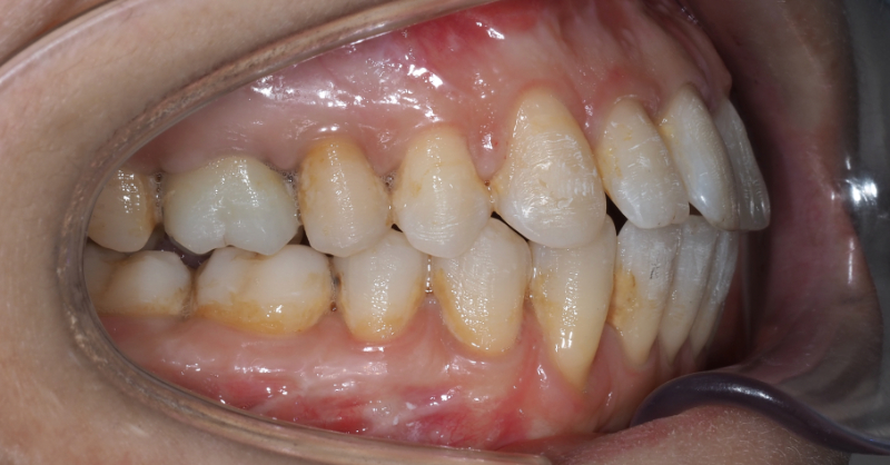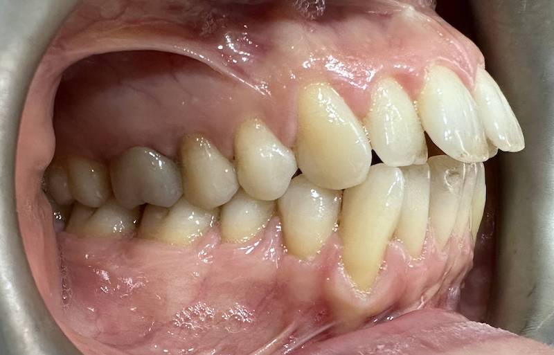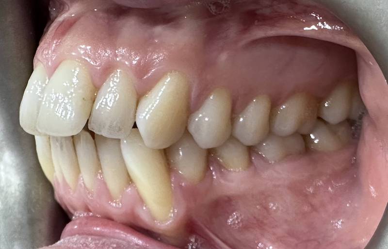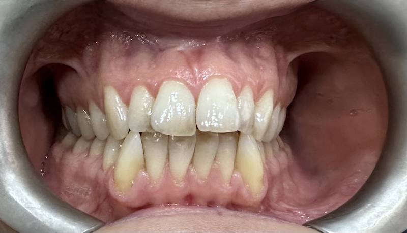 Durante la visita clinica si riscontrava un’evidente accentuazione delle pieghe cutanee naso-geniene e labio-mentali, accompagnata da una riduzione della larghezza del labbro superiore. A livello intraorale, l’esame metteva in luce un palato notevolmente ristretto e un disallineamento dentale.